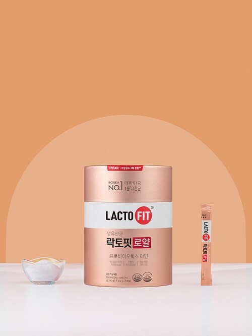 ‘락토핏 로얄’은 락토핏의 특허 공법인 프롤린과 실크피브로인 이중 특허 공법을 적용한 제품으로, 로즈 골드를 반영한 패키지 디자인을 통해 고급스러운 느낌을 살렸다.