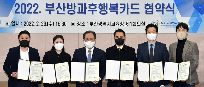 부산광역시교육청(교육감 김석준)은 학생들의 문화예술체험 기회를 확대하기 위해 2월 23일 오후 3시 30분 시교육청 제1회의실에서 업체 6곳과 ‘부산방과후행복카드 협약’을 체결했다.