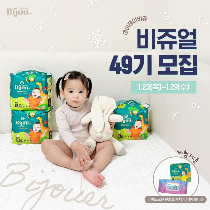 특히 이번 49기부터는 체험 기간을 2개월로 늘리고, 체험 제품 및 우수 리뷰어 선물을 2종으로 확대하는 등 혜택을 대폭 강화했다. 이번 49기 비쥬얼 20명에게는 데이데이비쥬의 대표 기저귀 라인업인 ‘라이트모션 팬츠’(1박스, 3팩)와 ‘캐치! 티니핑 물티슈’(1박스, 10개입)를 동시에 체험할 수 있는 기회가 제공된다. 더불어, 우수 리뷰어로 선정되는 5명에게는 신세계 상품권 2만원과 모나리자 선물 세트(3만원 상당, 7종)가 추가 제공된다.
