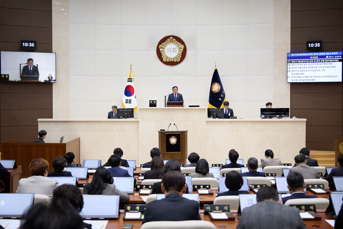 [용인=오왕석 기자] 용인특례시의회(의장 윤원균)는 20일 본회의장에서 제277회 제2차 정례회 제2차 본회의를 열었다.