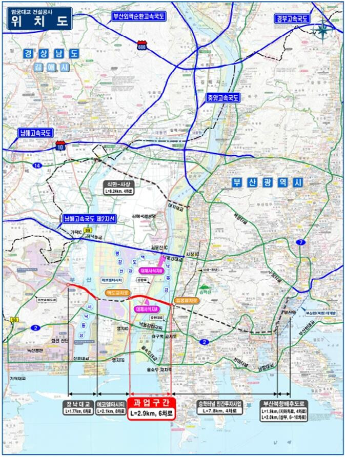 주요 행정절차를 완료하며 2030년 완공을 목표로 본격 공사 시행… ▲낙동강 횡단교량 교통체증 해소 ▲지역 균형발전 ▲에코델타시티 등 신성장 거점 연결을 강화하는 핵심 기반 시설(인프라) 역할 기대
