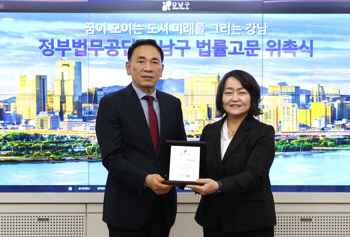 [시민일보 = 이대우 기자] 서울 강남구(구청장 조성명)가 최근 법무부 산하 국가로펌인 정부법무공단을 강남구 특별법률고문으로 위촉했다.