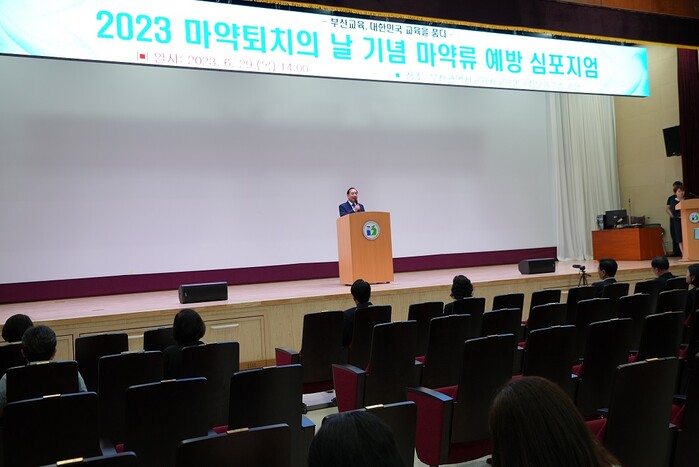 [부산=최성일 기자] 하윤수 부산광역시교육감이 29일 오후 3시 10분 부산교육연구정보원 대강당에서 학부모 등 350여 명이 참석한 가운데 열린 ‘학부모 대상 청소년 마약류 예방 심포지엄’을 열었다.