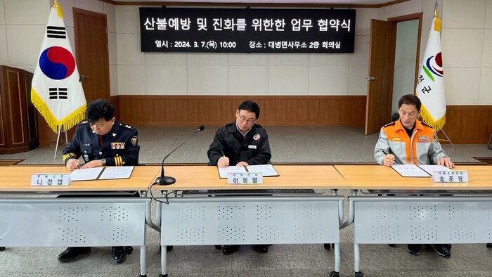 이번 협약은 점점 대형화되는 산불을 예방하고 신속한 초동대처를 위해 대병 파출소(소장 나경엽), 대병의용소방대(대장 송준용)와 ‘6년연속 산불 제로화 달성’을 목적으로 체결하게 됐다.