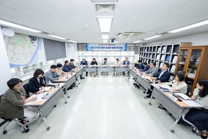 [시민일보 = 여영준 기자] 서울 광진구의회(의장 추윤구) 의원연구단체인 ‘광진 상공인 발전 연구회’가 최근 양일간 브리핑실에서 광진구 상공회 임원진과의 의견청취 2차 간담회와 광진구 수의계약 실태조사 연구용역 최종보고회의 시간을 가졌다.