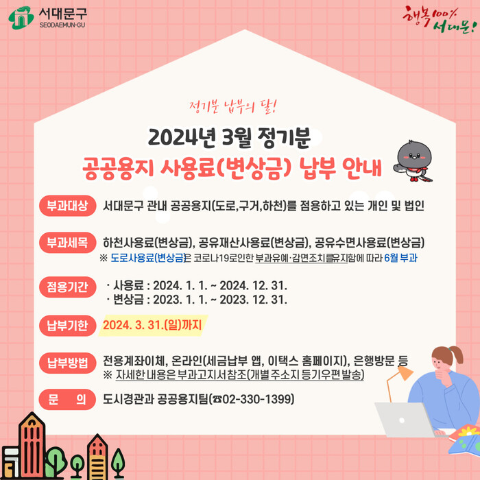 | ▲ 서대문구 공공용지 점용료 납무 안내문 (사진=서대문구청 제공) |