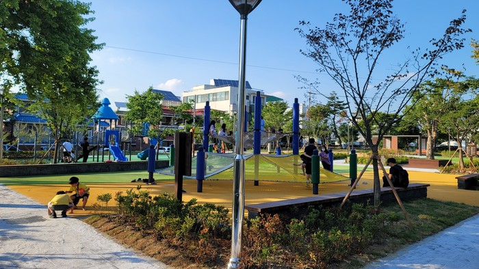 이번 사업은 공원 내 노후된 파고라, 벤치, 바닥포장 등 시설물을 교체하고 놀이시설을 새로 설치해 어린이가 마음껏 뛰어 놀면서 상상력을 키우는 놀이공간으로 새롭게 만들었으며, 데크쉼터와 기존 등나무파고라를 정비해 지역주민의 커뮤니티 장소로 조성했다.