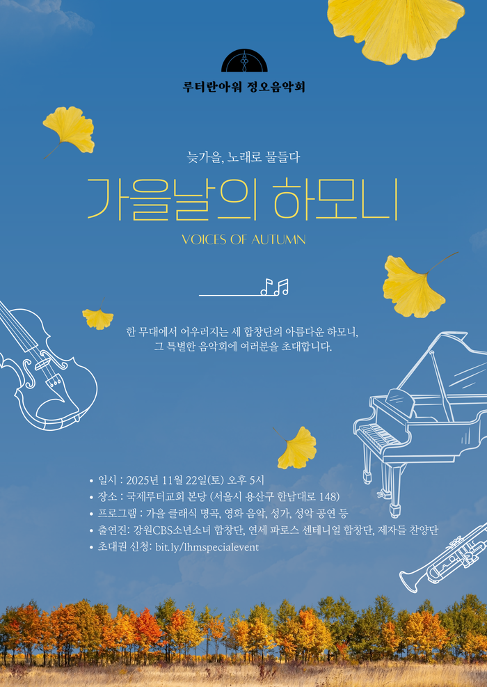 한국루터란아워가 오는 22일(토) 오후 5시 한남동 국제루터교회에서 ‘가을의 하모니’ 무대를 선보인다.