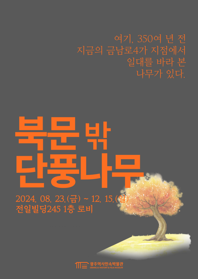 이번 전시는 금남로4가에서 350년 넘게 살았던 단풍나무의 조선시대 광주읍성 북문 밖 풍경에 관한 이야기로 꾸며졌다. 전시회의 시간적 배경은 17세기 초부터 20세기 초까지이며, 공간적 배경은 조선시대 광주읍성과 북문 밖 일대로 지금의 금남로 1가~5가이다.