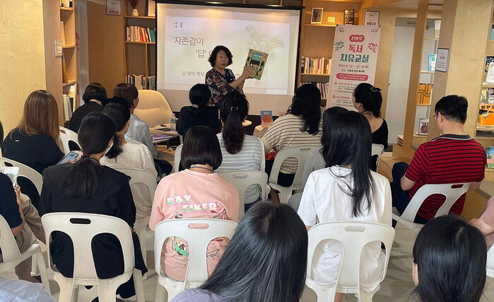 김영아 교수는 독서치유상담사이자 치유심리학자로 활동하고 있으며, 심리학 기반의 치유 강의와 집필, 후진 양성에 힘쓰고 있다. 이날 그림책테라피 활용법 등에 대한 참여자의 질문에 “그림책을 읽으며 작가가 말하려는 의도, 그림책 속의 다양한 소재 및 변화, 즉 갑자기 글자가 커지거나 색깔이 달라진 이유가 뭔지를 따라가다 보면 깊은 울림과 깨달음이 있다”며, “그림책을 통해 내가 존재하기까지 얼마나 귀한 것들이 움직였는지를 느끼면서 내가 정말 소중한 사람이라는 자존감을 회복했으면 한다”고 말했다.