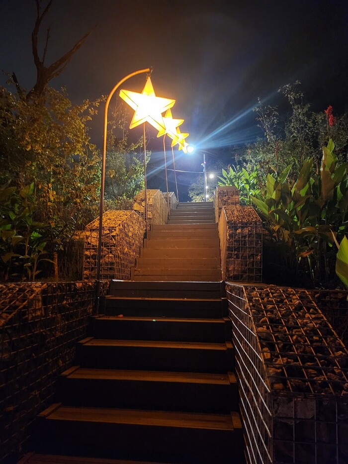 명일2동 주민센터 주변으로는 스트링 라이트를 설치해 어두웠던 길을 밝혀주고, 구봉산으로 이어지는 구간에는 별 모형의 조명전시물을 설치해 명일2동의 밝은 미래를 연상시킨다.