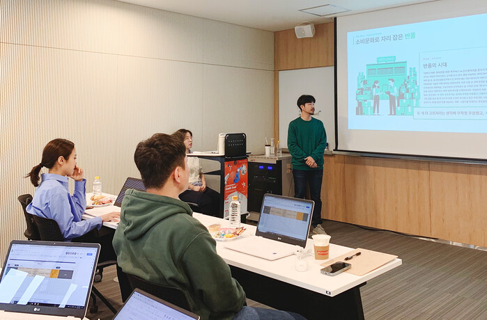 | ▲ KT&G가 지난 4일 서울 성수동에 위치한 KT&G 상상플래닛에서 ‘상상스타트업캠프’ 8기의 그로스·글로벌 트랙에 참가할 10개 팀을 선정했다. 사진은 같은 날 윤대건 리터놀 대표가 대면심사에서 프리젠테이션을 하는 모습 (사진= KT&G 제공) |