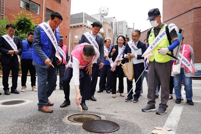 이에 정문헌 구청장과 바르게살기운동 종로구협의회, 종로구통장연합회 등 100여 명이 모기유충구제 사전 교육에 이어 캠페인, 주변 정화조에 구제제를 투여하는 현장실습에 함께했다.