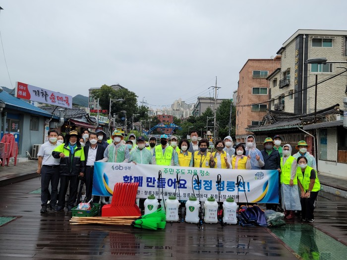 서울 성북구 정릉3동 주민들과 단체가 최근 정릉천 청소를 실시했다. 주민들은 개울다리~정릉771교의 정릉천과 산책로에서 잡풀 정리, 쓰레기 처리 등 청소와 방역을 했다. 사진은 이날 참여자들이 기념촬영을 하는 모습. (사진제공=성북구청)
