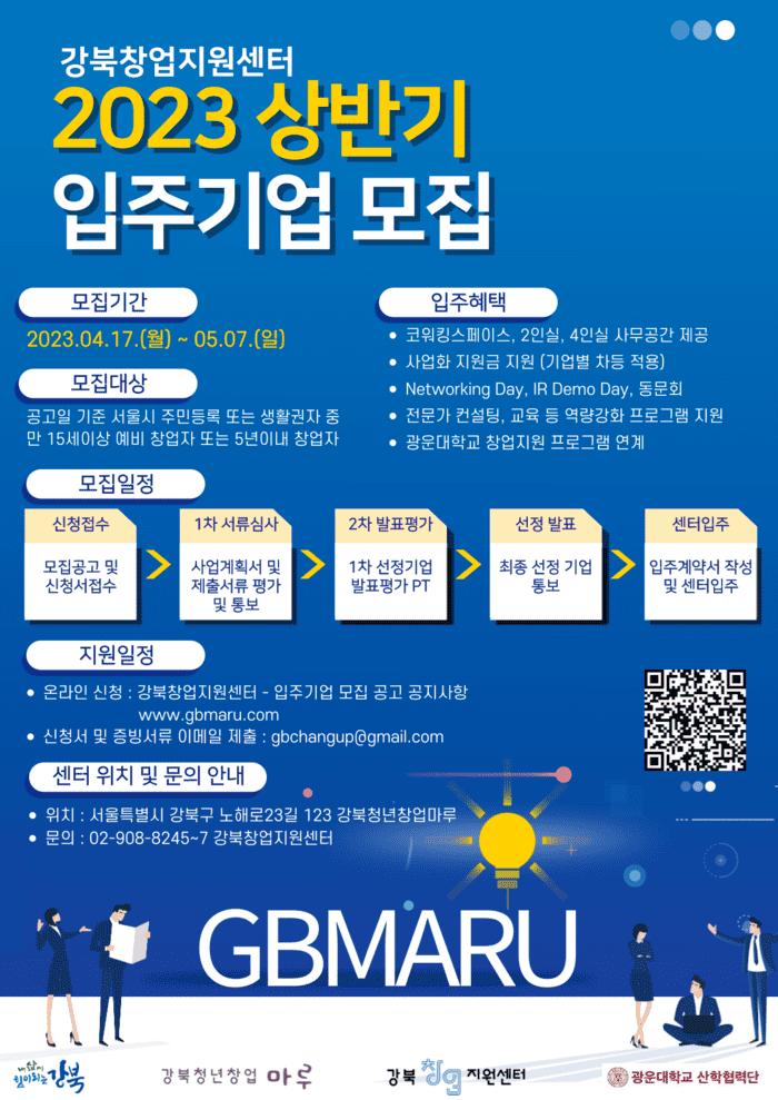 | ▲ 2023 상반기 강북창업지원센터 입주기업 모집 포스터. (사진=강북구청 제공) |
