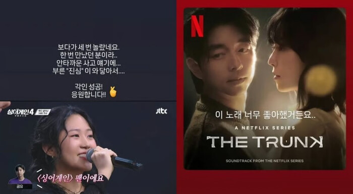 해당 게시물은 배우 공유가 인스타에 '싱어게인4'의 18호 가수를 응원하는 내용으로, 공개 당시 두 사람의 색다른 인연으로 인해 팬들의 눈길을 끌었다.