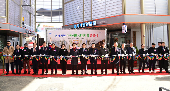 진주시는 7일 ‘논개시장 아케이드 설치사업 준공식’을 개최했다.