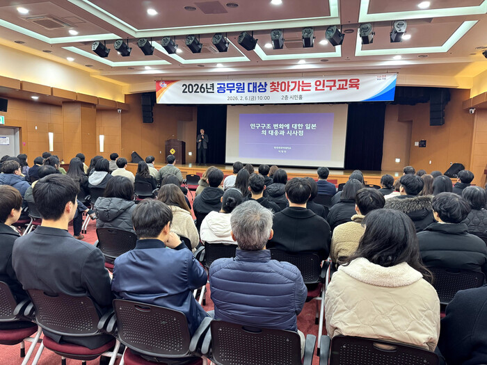 진주시는 6일 시청 시민홀에서 인구문제에 대한 지방정부와 공무원의 역할을 고민하고, 실효성 있는 해결책을 모색하기 위해 2026년 새해 첫 ‘찾아가는 인구교육’을 실시했다고 밝혔다.
