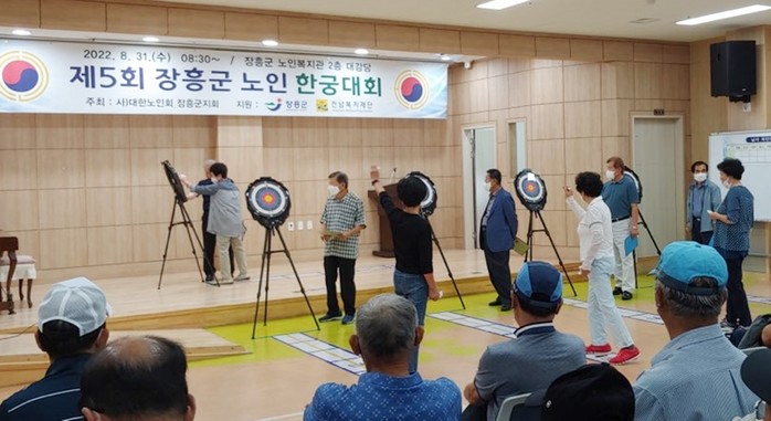전남 장흥군이 최근 ‘제5회 대한노인회 장흥군지회장기 장흥군 노인 한궁 대회’를 개최했다. 읍·면·별 남자 단체전과 남녀 개인전으로 진행됐으며, 군 노인회분회별 대표선수 80여명이 참석했다. 사진은 이날 한궁 대회 진행 모습. (사진제공=장흥군청)