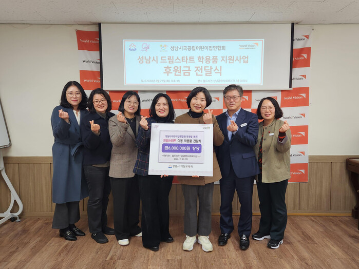| ▲ 아동보육과-지난 2월 27일 월드비전성남종합사회복지관 2층 회의실에서 열린 성남시 드림스타트 아동 학용품지원사업 후원금 전달식 때. |