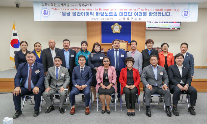 [시민일보 = 박준우 기자] 서울 강북구의회(의장 허광행)는 최근 구를 방문한 국외 우호도시 몽골 바양노르솜 대표단과 접견했다.