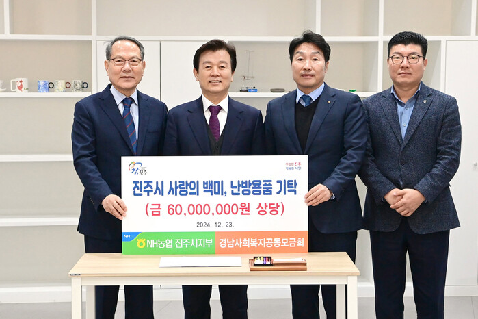 조규일 진주시장은 “어려운 여건 속에서도 해마다 소외된 지역사회의 이웃들을 위해 나눔을 실천해 주는 NH농협은행에 감사드린다. 지역의 나눔 문화가 지역사회에 온전히 스며들어, 추운 겨울철 단 한 명의 시민도 소외되지 않고 따뜻한 겨울을 보낼 수 있도록 노력하겠다”고 말했다.