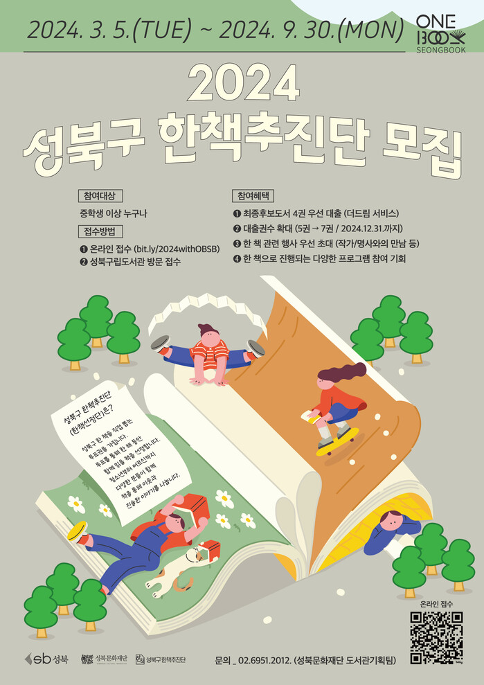 [시민일보 = 여영준 기자] 서울 성북구(구청장 이승로)가 지난 5일부터 2024년 ‘성북구 한 책 추진단(선정단)’(이하 한 책 추진단)을 모집한다.