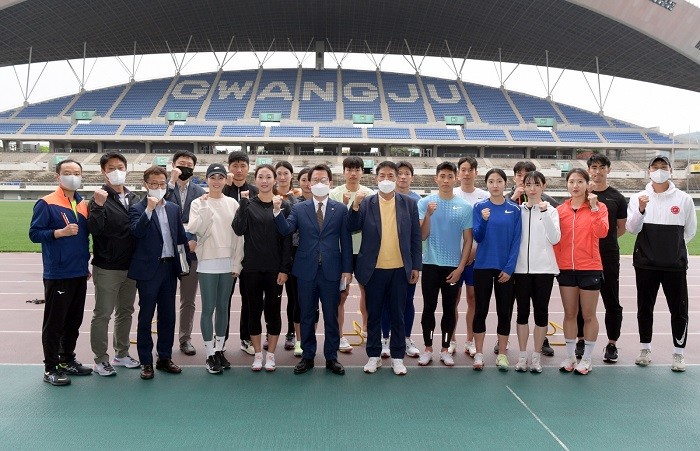 문영훈 광주광역시장 권한대행, 시청 직장운동경기부 육상팀 격려
