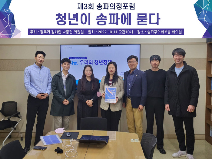 [시민일보 = 이대우 기자] 서울 송파구의회 5층 회의실에서 최근 제3회 송파의정포럼 ‘청년이 송파에 묻다’가 개최됐다.