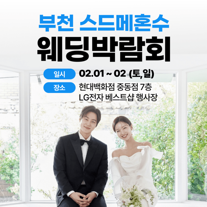 이번 부천 웨딩박람회는 부천지역 뿐만 아니라, 인천, 강서구, 김포,안양, 안산 등 인근 지역의 결혼준비를 희망하는 예비신랑신부들에게 새해 결혼준비 적합할 것으로 보여진다.