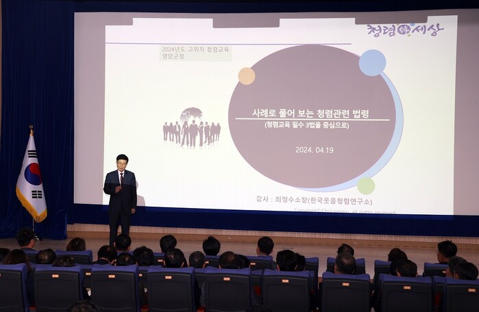 [영암=정찬남 기자] 전남 영암군(군수 우승희)이 5일 군청에서 5급 이상 간부 공무원 40여 명이 참여하는 ‘반부패·청렴교육’을 실시했다.
