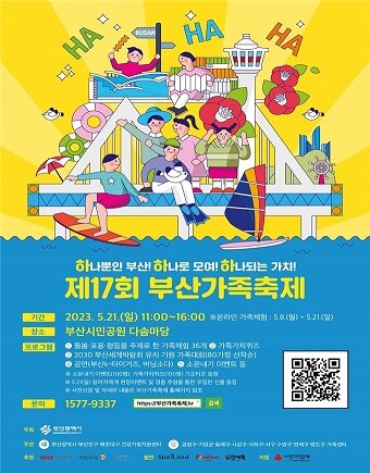 한편, 이번 ‘제17회 부산가족축제’는 BNK부산은행, 떡보의하루서면사상점, ㈜옵스가 후원하고 신세계 스파랜드, 키자니아부산, 삼진어묵이 협찬하며, 부산사회복지공동모금회가 지원한다.