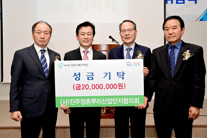 또 조규일 진주시장은 “지역경제 발전을 위해 힘써 온 협의회에 감사드리며, 정촌·뿌리산단이 우주항공국가산단과 함께 대한민국 우주항공산업의 중심이 되도록 인프라 구축과 정주여건 개선, 근로자 복지 향상을 위해 지속적으로 노력하겠다”며, “오늘 이취임식을 계기로 기업들의 어려운 여건 속에서도 성금을 기탁해주신 대표님들께 감사드리며, 앞으로도 지역경제의 든든한 버팀목이 돼 주시길 바란다”고 당부했다.