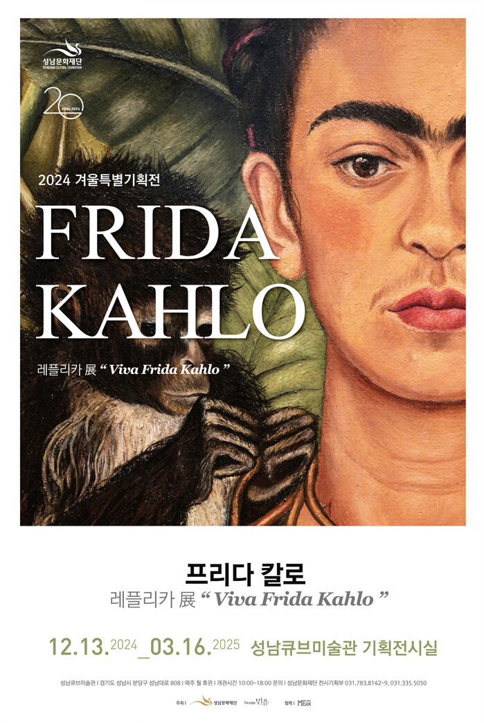 [성남=오왕석 기자] 성남문화재단(대표이사 서정림)이 20세기를 대표하는 여성화가 프리다 칼로의 삶과 예술을 다룬 특별기획전 ‘비바! 프리다 칼로>’ 레플리카 전시를 오는 12월 13일(금)부터 2025년 3월 16일(일)까지 성남큐브미술관 기획전시실에서 개최한다.