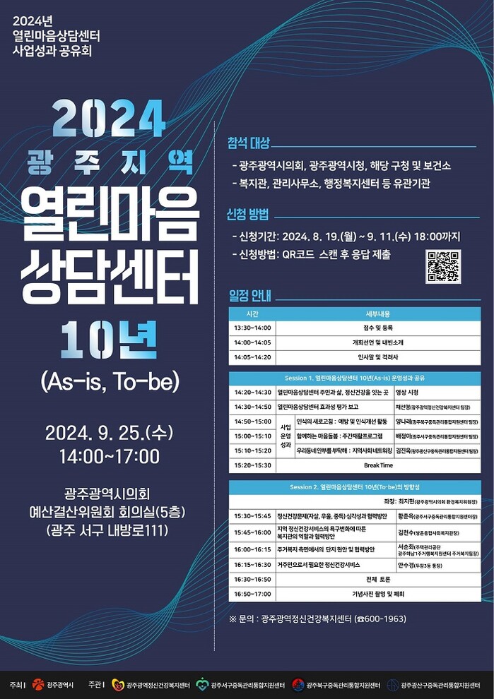최지현 광주시의회 환경복지위원장은 “열린마음상담센터 운영을 통한 변화를 되새기고, 앞으로의 방향성을 정립하는 중요한 계기가 됐다”며 “지속적으로 늘어나는 정신건강서비스 수요에 맞춰 서비스를 확대하고 강화할 필요성이 높아지는 만큼 열린마음상담센터 활성화와 확충을 위한 지원을 위해 노력하겠다”고 말했다.