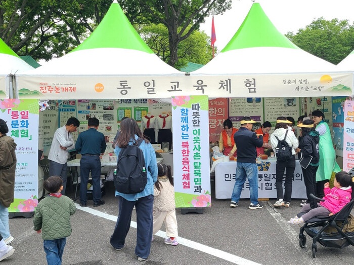 진주시 북한이탈주민지원지역협의회와 민주평화통일자문회의 진주시협의회는 제24회 진주 논개제 기간인 지난 3일부터 6일까지 4일간 진주성 공북문 일원에서 축제장을 찾는 시민 및 관광객들을 대상으로 ‘북한이탈주민과 함께하는 통일문화체험’홍보부스를 운영했다.