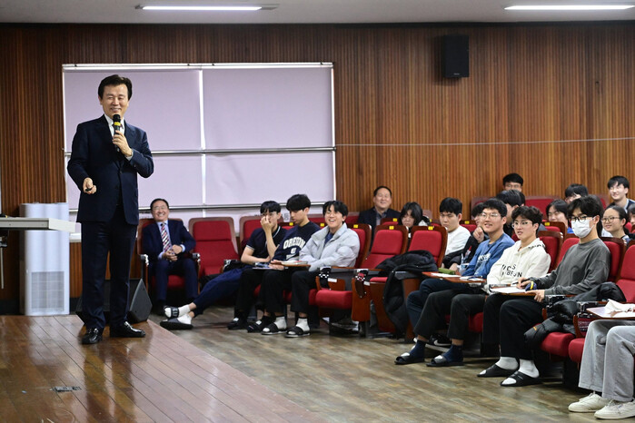 조규일 진주시장은 20일 경남과학고등학교 초청 일일특강 강사로 강단에 올라 ‘진주 K-기업가정신’을 학생들에게 알렸다.