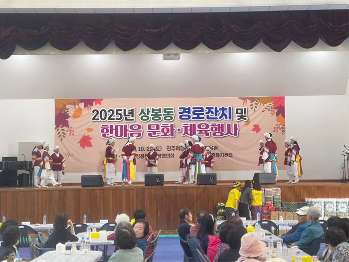 진주시 상봉동 단체장협의회(회장 강병규)는 25일 진주여자고등학교 체육관에서 지역 어르신을 공경하는 미풍양속을 실천하고 주민화합을 도모하는 ‘2025년 상봉동 경로잔치 및 한마음 문화·체육행사’를 성황리에 개최했다고 밝혔다.