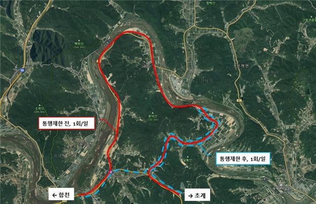 한편, 매일 1회 운행하던 합천-낙민-두사-내천-갑산-초계 버스 노선은 합천-낙민-갑산-초계로 변경 운행된다.