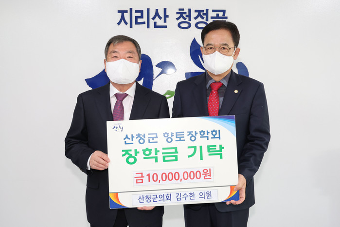 [산청=이영수 기자] 김수한 경남 산청군의회 부의장이 최근 향토장학금 1000만원을 기탁했다.