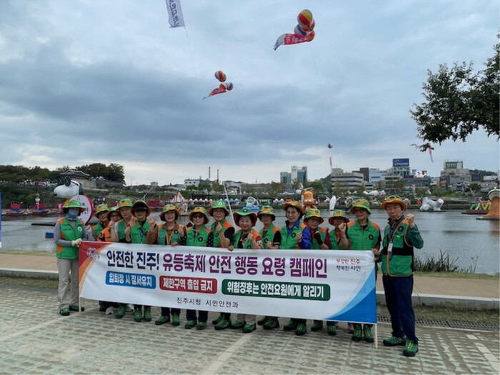 이날 캠페인은 진주시 관계자와 안전보안관 등이 참가해 방문객이 유등축제 마지막 날까지 안전하게 축제를 즐길 수 있도록 안전수칙을 집중 안내하면서 안전사고 예방에 적극 나섰다.