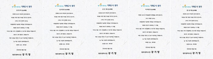 강기정 시장은 이어 “폭염과 폭우가 반복되는 이 여름, 지치고 힘든 우리 시민들에게 큰 용기와 위안을 주었다”며 “참으로 고생 많았고 고맙다”고 전했다.