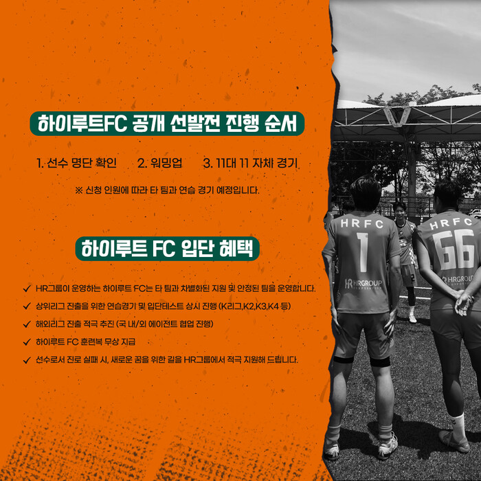 HR그룹 신호룡 대표이사는 "국내 프로팀 진출은 물론 해외 진출까지 적극 지원할 계획"이라며 "우리의 목표는 축구를 통해 더 많은 이들이 즐거움을 느끼고, 재능 있는 선수들이 꿈을 펼칠 수 있는 플랫폼을 만드는 것"이라고 전했다.