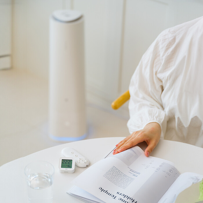 iH12 Pro는 사용자가 적정 습도를 체감할 수 있도록 설계된 가습기다. 동봉된 IoT 무선 습도센서는 5분마다 사용자 주변 습도를 감지해 본체에 신호를 보낸 후 적정 습도에 맞춰 가습량을 자동 조절하는 기능을 갖춘 디바이스다. 대부분의 가습기가 자동 습도조절 기능을 탑재하고 있지만, 이는 가습기(본체) 주변의 습도만을 체크해 목표 습도에 도달하면 자동으로 분무가 중단된다. 이로 인해 정작 사용자는 건조함을 느끼게 된다. 이러한 불편함을 해소하기 위해 아이닉은 사용자의 위치가 바뀌어도 적정 습도를 느낄 수 있도록 무선 습도센서를 분리형으로 설계해 실효성을 높였다.