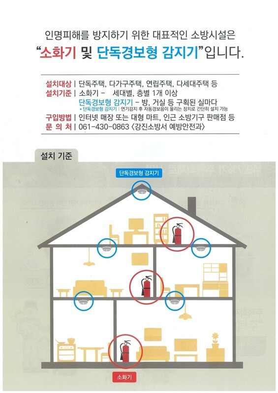 | ▲ 소화기 및 단독경보형 감지기 설치 홍보 포스터 / 강진소방서 제공 |