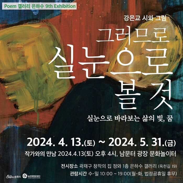 한편 순천 창작예술촌 1호(옥천길 19) 은하수 갤러리는 수요일부터 일요일까지 운영하며 전시정보는 순천문화재단 홈페이지에서 확인할 수 있다.