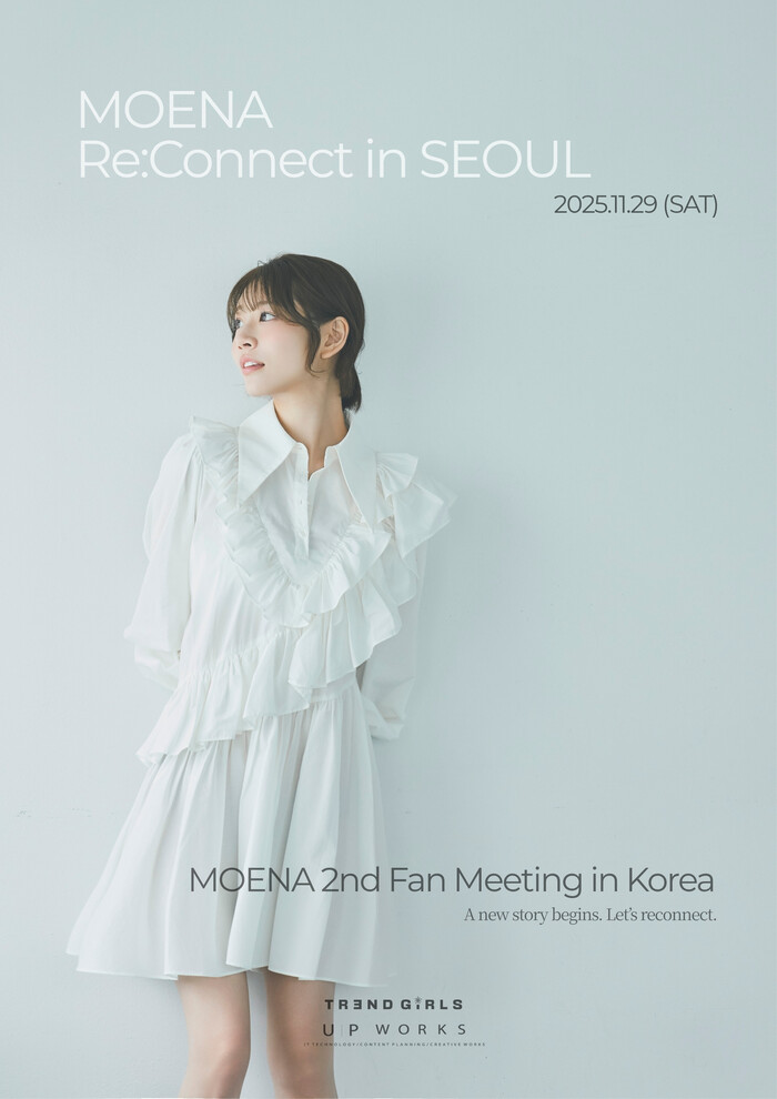 모에나는 섬세한 표현력과 청아한 보컬로 일본, 아시아 전역에서 폭넓은 팬층을 보유한 아티스트다. 올해 2월 데뷔 싱글 ‘언제나 함께(Always With You)’를 발표하며 가수로서의 활동을 본격화했으며 따뜻한 감성과 진심 어린 음악 스타일로 ‘감성형 싱어’라는 평가를 받고 있다. 특히 이번 팬미팅에서 선보일 예정인 곡 ‘Shiny Star’는 한국어 버전으로 준비해 팬들에게 더욱 특별한 무대를 선사할 것으로 기대된다. 한국어로 직접 노래를 부르는 시도로, 국내 팬들과의 소통에 대한 진정성을 보여주는 무대가 될 전망이다.