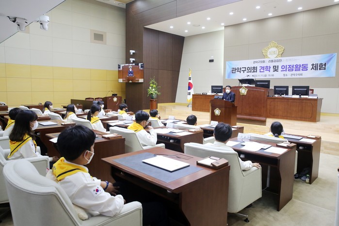 [시민일보 = 박준우 기자] 서울 관악구의회(의장 임춘수)는 최근 구 의회 4층 본회의장에서 13명의 초등학교 6학년 학생들이 참가한 가운데 모의의회를 개최했다.