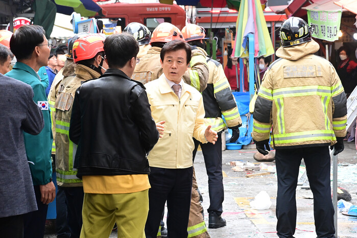 또한, 시장상인회와 면담을 통해서 “전통시장 대형화재에 대한 경각심을 갖고, 전기·가스·소방 등 화재 위험 시설 안전점검에 최선을 다해야 한다”고 강조했다.