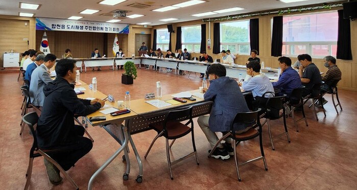 이날 회의는 ▲주민협의체 운영위원 선출 ▲주민협의체 정기 회의(안건1. 운영위 구성 및 운영, 안건2. 분과 조직 재구성, 안건3. 합천읍 주민협의체 규정안 승인) ▲도시재생대학 안내 ▲질의 및 답변 ▲폐회 순으로 진행됐다.